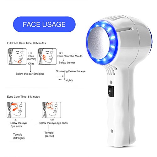 Funzioni: i 12 LED blu forniscono fototerapia per la rimozione dell'acne, l'eliminazione dell'infiammazione della pelle e la riduzione della secrezione di grasso. Eliminazione delle rughe, levigatezza della pelle, sbiancamento e rassodamento della pelle, segni diluiti, occhiaie, borse per gli occhi, riduzione del grasso, forma snella contorni del viso e favorire la circolazione sanguigna e il metabolismo.
