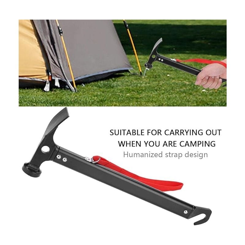 durevole e antiruggine. 【Dimensioni】: circa 30,5 x 11 x 4 cm / 12 x 4,3 x 1,6 pollici. 【Strumenti di scavo】: un'estremità della testa del martello è progettata con una pala piatta per uno scavo mirato. il gancio a martello può essere utilizzato come asta di trazione per tende per estrarre facilmente pile o chiodi da un terreno duro. 【Multifunzionale】: ideale per piantare chiodi su un terreno duro, è uno strumento utile per il campeggio, l'escursionismo, il picnic, la famiglia e altri all'aperto attività.