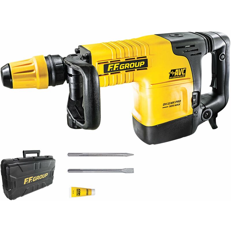 Il martello demolitore FFgroup DH 11MX Pro 1500W è potente e maneggevole, dotato di sistema antivibrazione brevettato. Potente motore da 1.500 W Mandrino SDS Max per una sostituzione rapida degli accessori e per una foratura senza sforzo su calcestruzzo Regolazione angolazione scalpello (12 posizioni) Impugnatura ausiliaria a 360° SPECIFICHE TECNICHE Tensione nominale 230 V 50 Hz Potenza nominale assorbita 1.500 W Frequenza colpi 1.000-1.900 min⁻¹ Forza colpo singolo 25 J Portautensili SDS Max Ø portautensili 18 mm Cavo 6 m Peso 10,5 kg ACCESSORI IN DOTAZIONE Impugnatura ausiliaria 2 Scalpelli Lubrificante x1 Custodia