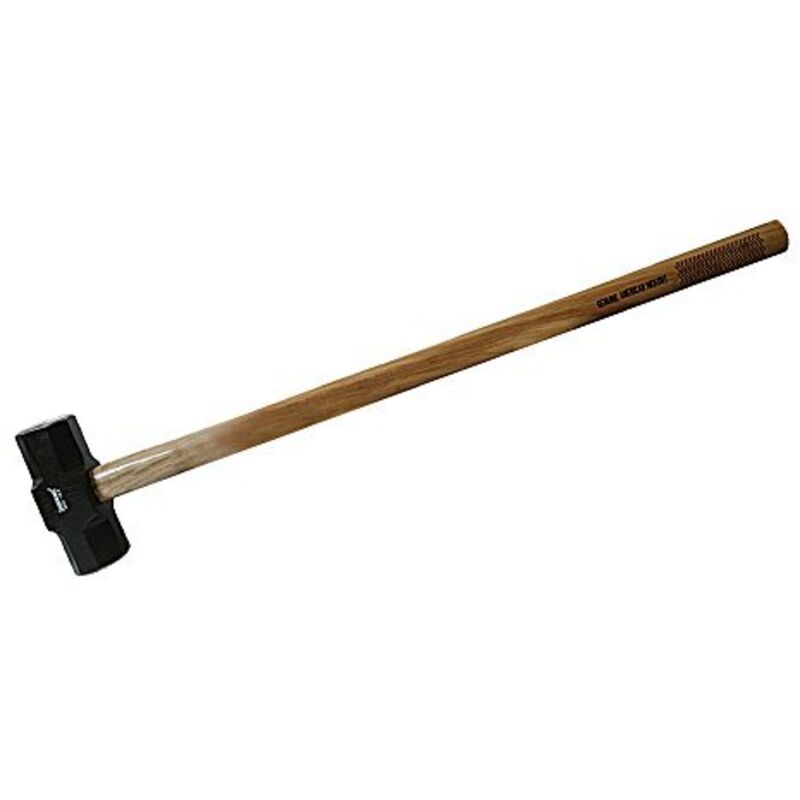Testa in acciaio fucinato verniciate a polvere Superfici di martellamento rettificate Manico in noce americano Hardened forged steel head, double steel and wood wedged system, hickory shaft and precision laser cut zig-zag grip.