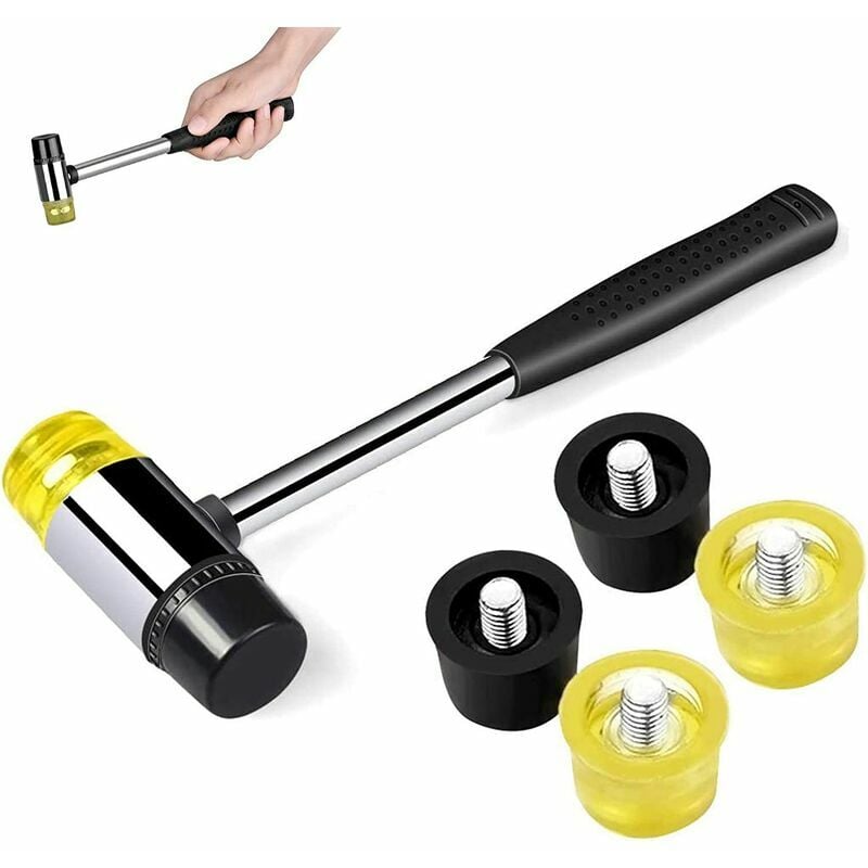 Contenuto della confezione: 1 martello di gomma + 4 teste di martello di ricambio. La lunghezza totale del martello di gomma è di 255 mm Il diametro della testa del martello è di 3 cm La lunghezza dell'albero è di 22,5 cm Il peso netto è di 183 g. Colore: argento, giallo chiaro, nero. . Design a doppia testa di martello: due teste di martello di materiali diversi possono soddisfare diversi ambienti di installazione. Il martello in nylon è leggermente più duro della gomma. . Materiale: il martello di gomma è realizzato in nylon e gomma di alta qualità, resistente e durevole, sicuro e utilizzabile a lungo. La testa del martello adotta una superba tecnologia di invasatura sul manico, che è saldamente ancorato e non collasserà. . Gomma sostituibile: questo martello di gomma fornisce 4 teste in gomma sostituibili extra, connessione filettata e facile installazione, quindi potresti averne bisogno per ogni occasione. . Versatile: ideale per lavori duri e di lunga durata, come legno
