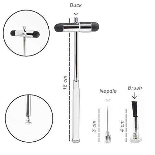Gima - Martello Neurologico Classico, Buck Classic, Senza Lattice, Colore Argento, Manico in Ottone Cromato, Dotato di Ago e Agesimetro, Dispositivo medico Classe I