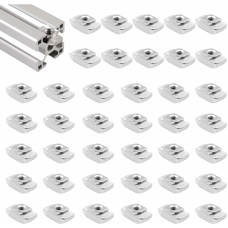 M6 T-Nut - Serie 45 Riceverai 40 dadi a martello con filettatura interna m6, adatti per una scanalatura con un diametro di 6 millimetri. 【M6 T-Nut】 Il Il dado a T è realizzato in acciaio al carbonio di alta qualità con superficie nichelata, robusto e resistente alla corrosione in molti ambienti. 【Articolo Dado con intaglio M6】Dopo l'inserimento e l'avvitamento, il dado a martello gira nella scanalatura del profilo in alluminio. 【Set di dadi con scanalatura a T】Questo dado con scanalatura a T è progettato per la costruzione di telai in alluminio utilizzando profili in alluminio. È sagomato in modo da poter essere utilizzato in qualsiasi punto del profilo corrispondente. 【M6 T-Slot Nuts】 Ampiamente utilizzato per la costruzione di strutture di telai industriali in alluminio, macchine per il taglio laser CNC, stampanti 3D, progetti di robotica, ecc. < img src=https://m.media-amazon.com/images/I/811hwZGY-EL._SL1500_.jpg> Assemblaggio e installazione Livellatori facili Materiale