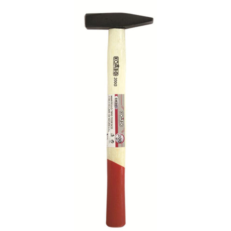 KOMBO - Martello Tipo Tedesco DIN 200gr con Collare di Sicurezza e Manico in Legno Martelli e Mazzuole Utensili a Mano