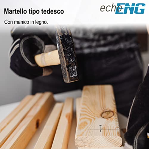 Martello tipo tedesco: Il martello di tipo tedesco echoENG è ideato per scopi professionali ed hobbistici. Grazie al pratico manico in legno e super leggero, il martello sarà più semplice da maneggiare.
