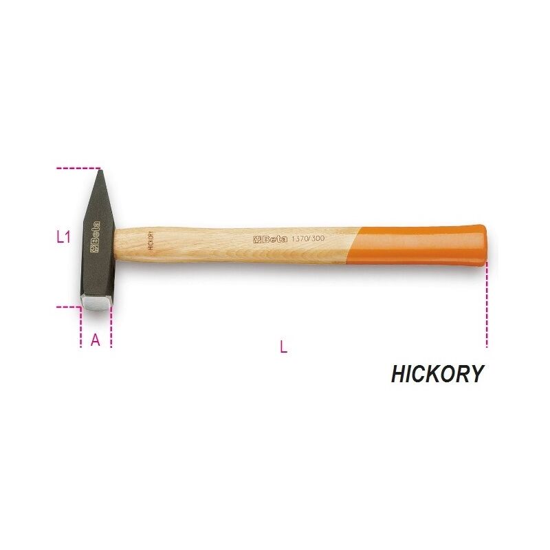 Martello Tipo Tedesco Per Meccanici Manico In Legno - Beta 1370 Articolo 1370 Beta Utensili Codice 013700055 Martello tipo tedesco per meccanici manico in legno Cod. Art. g A mm L mm L1 mm 013700055 1370 500 500 27 320 118 1370/MR500