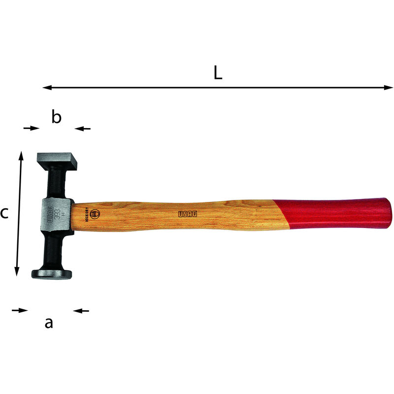 MARTELLO A TESTE PIANA TONDA E QUADRA 393 Manico in hickory Codice L mm a mm b mm c mm U03930001 290 32 28 104
