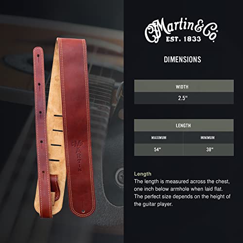 La tracolla in pelle perfetta per la tua chitarra Martin Larghezza: 6,3 cm Lunghezza regolabile: 96,5-137,0 cm (min - max) Made in USA