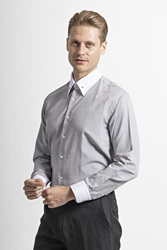 Jack Martin - Camicia Oxford Grigio con Colletto a Spilla - Camicie Formali Slim Fit per Uomo.