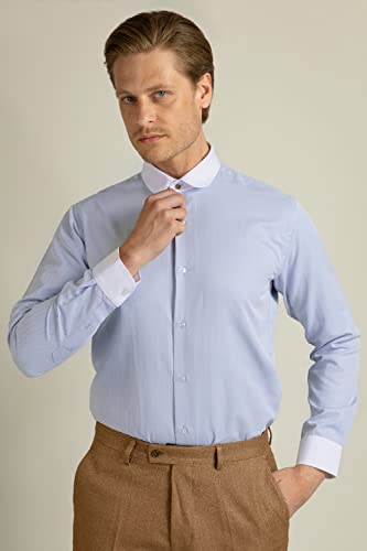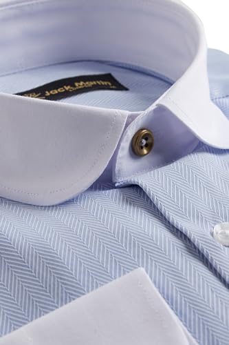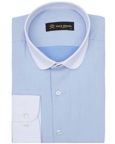 Jack Martin London Camicia con Colletto Club da Uomo | Camicie Business Slim Fit e Camicie Casual con Colletto Tondo | Camicia in Stile retrò (Spina di Pesce Blu Scuro,M)