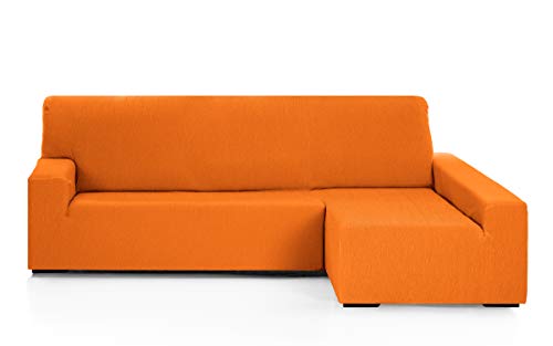 Contenuto della confezione: 1 fodera per divano con chaise longue, bracciolo a destra, elasticizzata, colore arancione, modello Emilia.