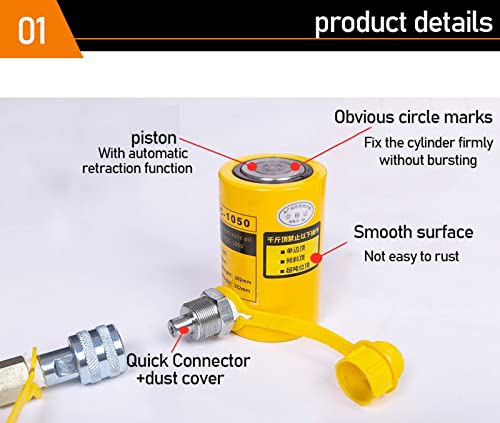 [Rafforzare Il Pistone]: Il pistone del Martinetto di Sollevamento è realizzato con un processo antiruggine cromato e tempra ad alta frequenza. Non è facile da deformare. La molla incorporata ha la funzione di rientro automatico. La retrazione non è Caton e deve essere utilizzata con una pompa idraulica manuale.