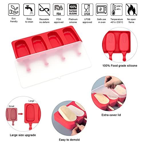 MARUKO 2 Stampi Per Barrette Di Torta Stampi Per Ghiaccioli Stampo Ghiaccioli Stampi Per Ghiaccioli Creatore di Bastoncini Ovali Per Gelato Fatto in Casa Con 2 Coperchi e 100 Bastoncini (Rosso)