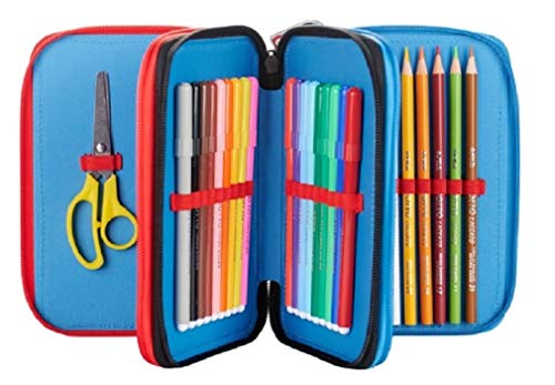 ✔️Contenuto: 1 penna tratto blu 1 penna tratto rossa 1 penna tratto nera 1 matita HB 1 gomma 1 temperamatite 1 righello 1 squadra 1 goniometro 18 pastelli Fila 18 pennarelli FIla Giotto Turbocolor