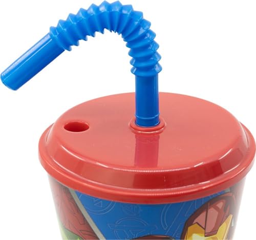 Marvel Bicchiere rosso e blu per bambini in plastica Avengers Iron Man Hulk 430 ml con cannuccia e coperchio flessibile