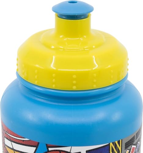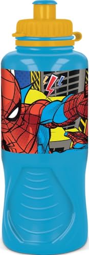 Marvel Borraccia azzurra per bambini in plastica Spiderman Uomo Ragno 400 ml con chiusura antigoccia e banda antiscivolo