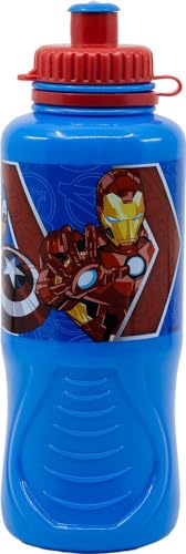 Marvel Borraccia blu per bambini in plastica Avengers Iron Man Hulk Captain America 400 ml con chiusura antigoccia e banda antiscivolo