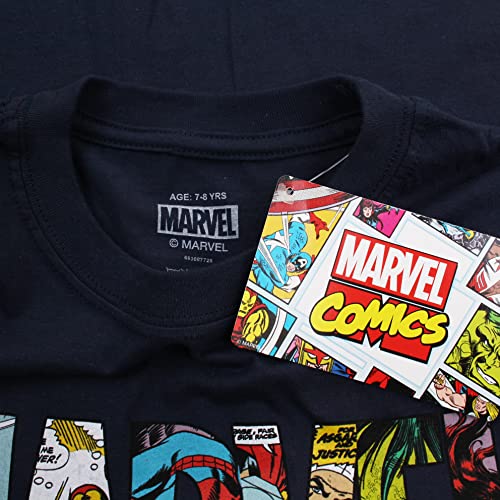 Marvel Logo Characters T-Shirt, Blu (Navy), 9-10 Anni Bambino