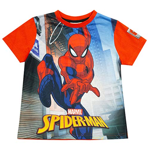 Marvel Comics Spiderman Schwingen Durch Die Stadt Jungen-T-Shirt Rot 98 | Geschenkidee für Jungen, Rächer-Superheld Top