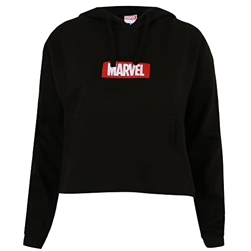 Marvel Box Logo Cropped Hood Felpa con Cappuccio, Black, Small Donna