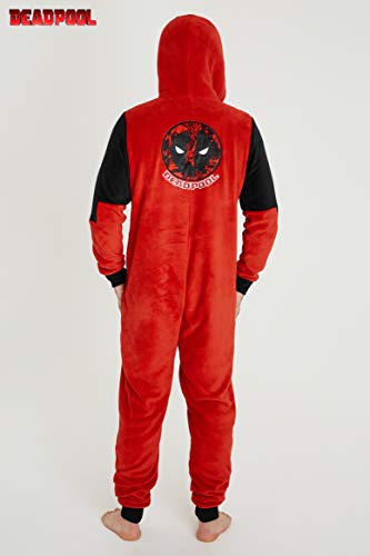 Marvel Deadpool Pigiama Uomo Intero, Pigiamone in Caldo Pile con Cappuccio XS-2XL, Simpatici Regali per Lui
