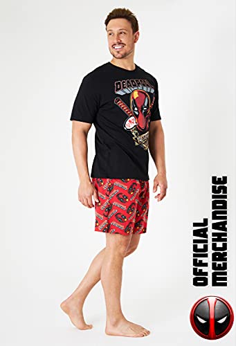 Marvel Deadpool Pigiama Uomo, Pigiama Due Pezzi in Cotone con Deadpool T Shirt E Pantaloncini Corti, Pigiami Uomo Taglie Forti (Nero/Rosso, XXL)