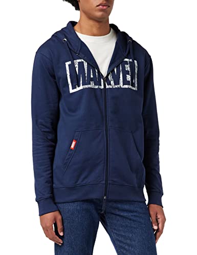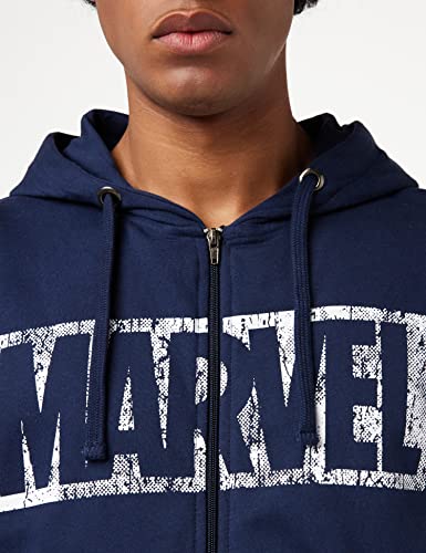 Marvel Logo Distress Felpa, Blu Navy, 2XL Uomo