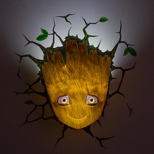 Marvel MCU Guardiani della Galassia Baby Groot Luce Notturna da Parete - Cordless 3D LED Deco Lampada da Parete