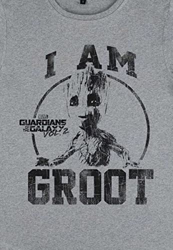 Marvel Guardians of The Galaxy 2-Collegiate Groot Women's Rolled Sleeve T-Shirt, Melange Grey