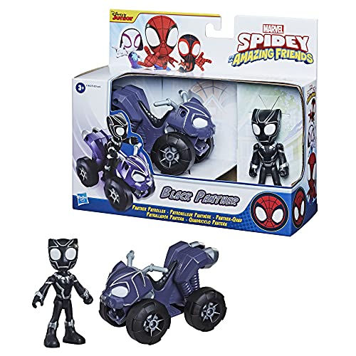 Marvel Hasbro Spidey and His Amazing Friends Black Panther Action Figure e Panther Patroller Vehicle, per bambini dai 3 anni in su, multicolore, F19435X2