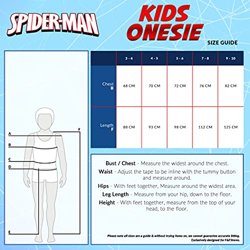 Marvel Pigiama Intero Bambino Spiderman Pigiamone Tutina di Pile Bambini (Multicolore, 9-10 Anni)
