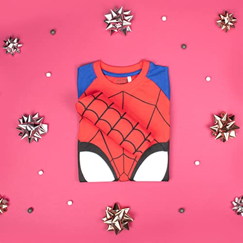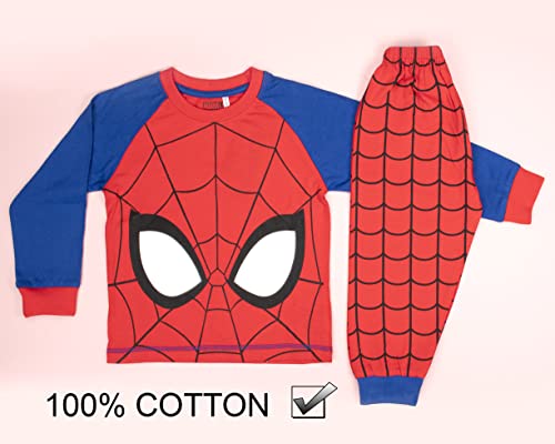 Marvel - Pigiama Spiderman per bambini - Pigiama Spiderman a maniche lunghe - 100% cotone, pigiama supereroe a maniche lunghe - Merchandise ufficiale Marvel, Rosso, 5-6 Anni
