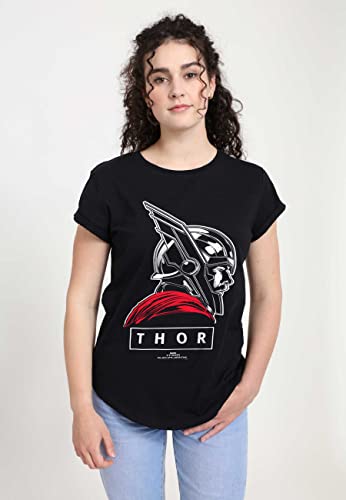 Marvel Ragnarok-Thor of Asgard Women's Rolled Sleeve T-Shirt, Black, XL