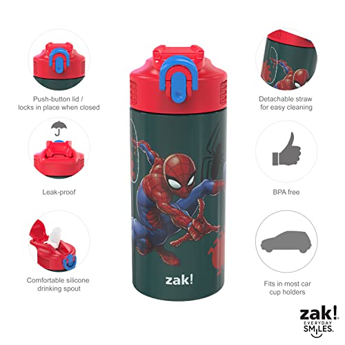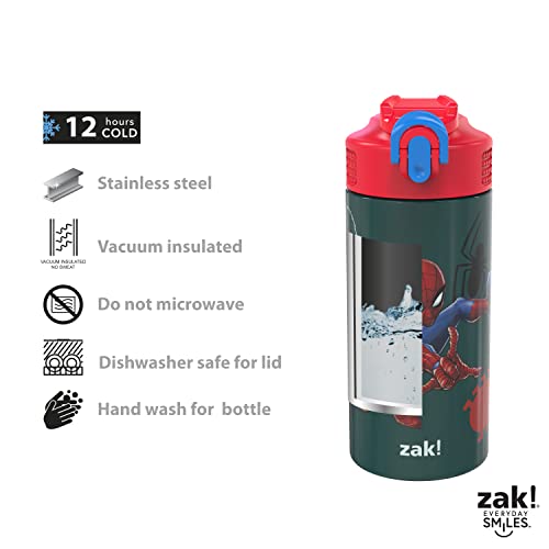 Zak! Marvel Spider-Man - Borraccia termica in acciaio inox - 400 ml - Durevole e a prova di perdite, beccuccio con cannuccia ribaltabile e passante per il trasporto integrato, senza BPA