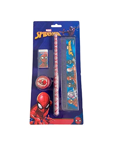Marvel Spiderman Stationery Set, matite, righello, gomma e temperamatite
