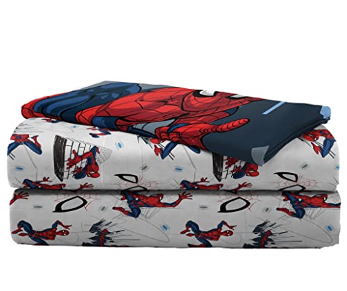 Marvel Spiderman City Streets - Set di lenzuola per letto singolo, 3 pezzi, 100% cotone, include lenzuolo con angoli, lenzuolo e federa