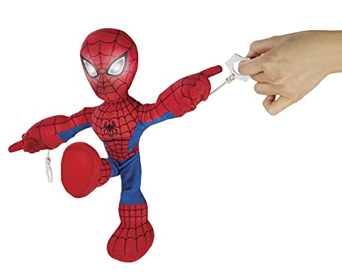 Marvel City Swinging Spider-Man Plush Figure, 11in Soft Super Hero Doll with Web-Swinging Action, Lights & Sounds, Gift for Kids & Collectors