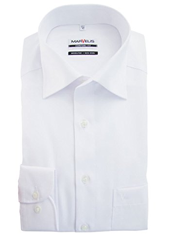 MARVELiS Comfort Fit camicia extra lungo braccio con 69 cm lunghezza del manicotto con manicotti New Kent e sport in puro buegelfreien cotone in tinta unita con una tasca sul petto con logo ricamato in taglio diritto Bianco