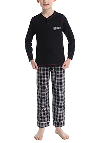 【Consigli per il Lavaggio】: il pigiama per bambini è realizzato in 100% cotone, morbido e confortevole. I pantaloni sono completati da una fascia elastica in vita, possono regolare la vita. Top a maniche lunghe + pantaloni a quadretti, tasca sul petto, design unico. Adatto per bambini dai 10 ai 16 anni, caldo costume autunnale e invernale.