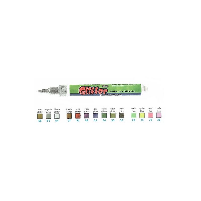 Colore: verde glitter Permanente Coprente Smalto base acqua Inodore Tappo anti-soffocamento ISO 11540 Corpo in polipropilene Punta in fibra acrilica da 3 mm Tratto da 1 a 2 mm asciuga dopo 12 ore e si fissa con ferro a media temperatura Punta rientrante con valvola interna Tappo posizionabile sul retro Sfere di metallo interne Ideale su tessuti scuri Ideale per decoro di materiali porosi di uso comune, tessuti in fibra naturale o sintetica, anche a trama grossa come i jeans Scrive su lana, cotone, lino, seta, poliestere, rayon, acetato, jeans, carta, cartone, gesso, legno, terracotta