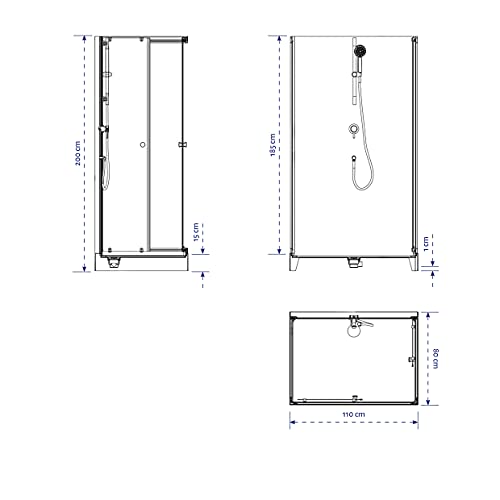 Cabina doccia con ingresso frontale con ante scorrevoli, 80 cm x 110 cm, 200 cm, larghezza ingresso ca. 53 cm