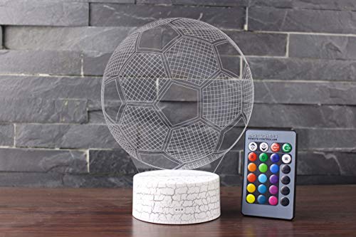 MARZIUS Lampada da tavolo 3D Illusion LED per camera da letto, luce notturna con base illuminata, 16 colori che cambiano, pulsante tattile intelligente e telecomando palla da calcio, ragazzi, bambini