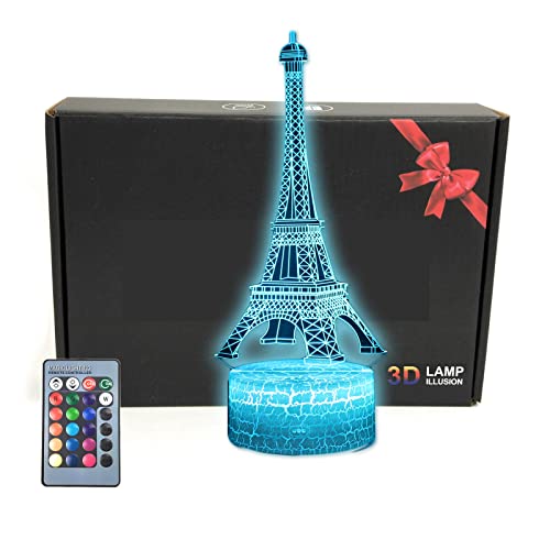 MARZIUS Torre Eiffel Building Lampada da Tavolo 3D Illusion, Luce Notturna con Base Luminosa, Regalo Decorativo per la Festa del papà, papà, Madri, Uomini, Donne, Bambini, Ragazzi, Adolescenti