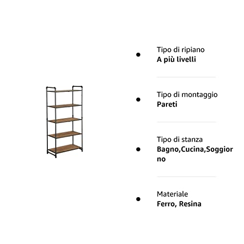 Rendilo diverso: lascia dietro di te i noiosi mobili e porta questo scaffale industriale in casa. Con la sua struttura in tubo di ferro nero e i ripiani rustici marroni, questo scaffale a 5 piani darà sicuramente alla tua stanza un aggiornamento unico.