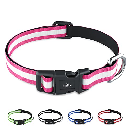 MASBRILL Collare per Cani di Taglia Piccola Media Grande, Collare Cane Riflettente in Nylon con Morbido Imbottito, Regolabile e Traspirante(Rosa M)