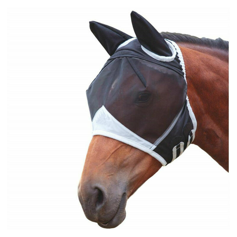 Maglia nera resistente: la maglia è molto fine. La rete leggera e traspirante non blocca la visuale del cavallo, protegge le orecchie e gli occhi del cavallo in tutte le direzioni e impedisce alle mosche / zanzare di mordere. Traspirante: la maggior parte delle mosche della maschera è a rete, che favorisce circolazione d'aria. Il tessuto sulle orecchie è molto leggero. La maschera antimosche inoltre non preme sugli occhi. Maschera con ampia chiusura in velcro regolabile: le doppie cinghie in velcro sotto la mascella sono larghe e resistenti. Confortevole: morbida imbottitura su tutta la intera maschera antimosche. Questa maschera si chiude magnificamente dappertutto grazie al tessuto morbido. Molto leggero, mantiene la sua forma anche quando viene rimosso, rendendolo facile da indossare e da togliere. Super confortevole. Lavabile: lavabile in lavatrice. Può anche essere spruzzato con il tubo per pulire lo sporco a mano.