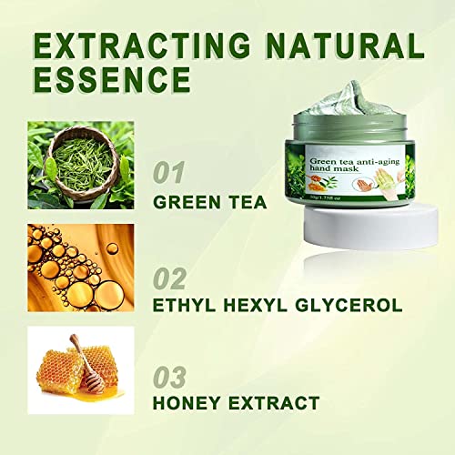 Maschera per le mani antirughe al tè verde, maschera per le mani staccabile, maschera idratante esfoliante nutre la pelle, cura delle mani dei calli per tutti i tipi di pelle, per uomini e donne (1