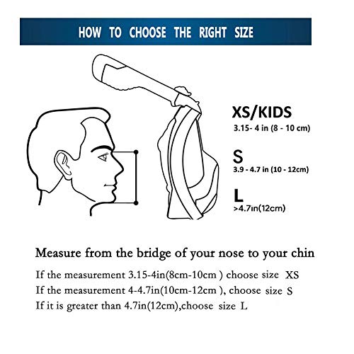 Con la bocca chiusa, misurare la distanza tra il ponte del naso e la parte inferiore del vostro mento: se misura meno di 12 cm, scegliere la taglia: S;