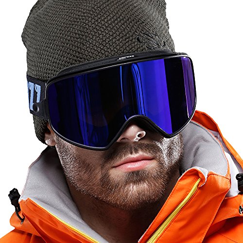 Maschera da sci, Copozz MX 2 in 1 maschera da sci per snowboard Snow - per donne uomini Ladies Youth Teen - magnetico Interchangeable Lens - OTG sopra gli occhiali doppia lente per uso Day & Dusk, Balck Blue (VLT 12%/60.9%)