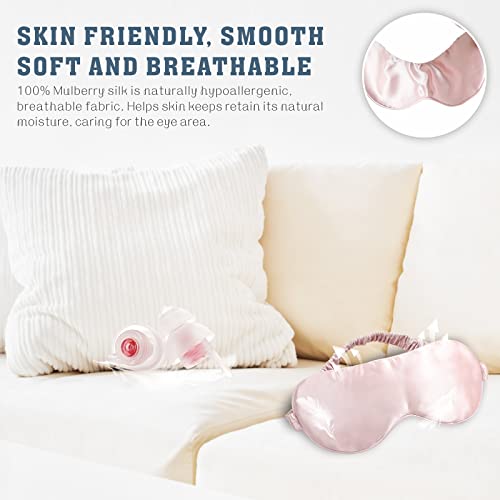 Maschera per dormire in seta, 100% gelso 22 Momme Maschera per occhi in seta per donne/uomini che dormono, Maschera per dormire morbida con tappi per le orecchie e una borsa da viaggio in raso (Rosa)